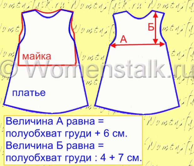 După ce am examinat numeroasele rochii pentru copii gata făcute în magazin, eu a concluzionat că puține rochii au o diferență în decolteu armhole înapoi și în față. Adică armuriile din spate și din față coincid cele mai multe rochii sunt fără mâneci. Și rochii cu armholes spatele este mai puțin adânc decât găurile din față – ca în diagrama noastră de mai sus). Diferența de adâncime a gâtului, de regulă, există, dar și nu întotdeauna.